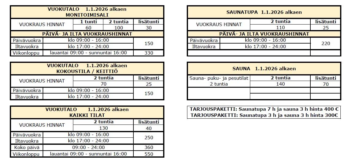 Vuokraus ja hinnasto VuoKu-talo, saunatupa ja sauna